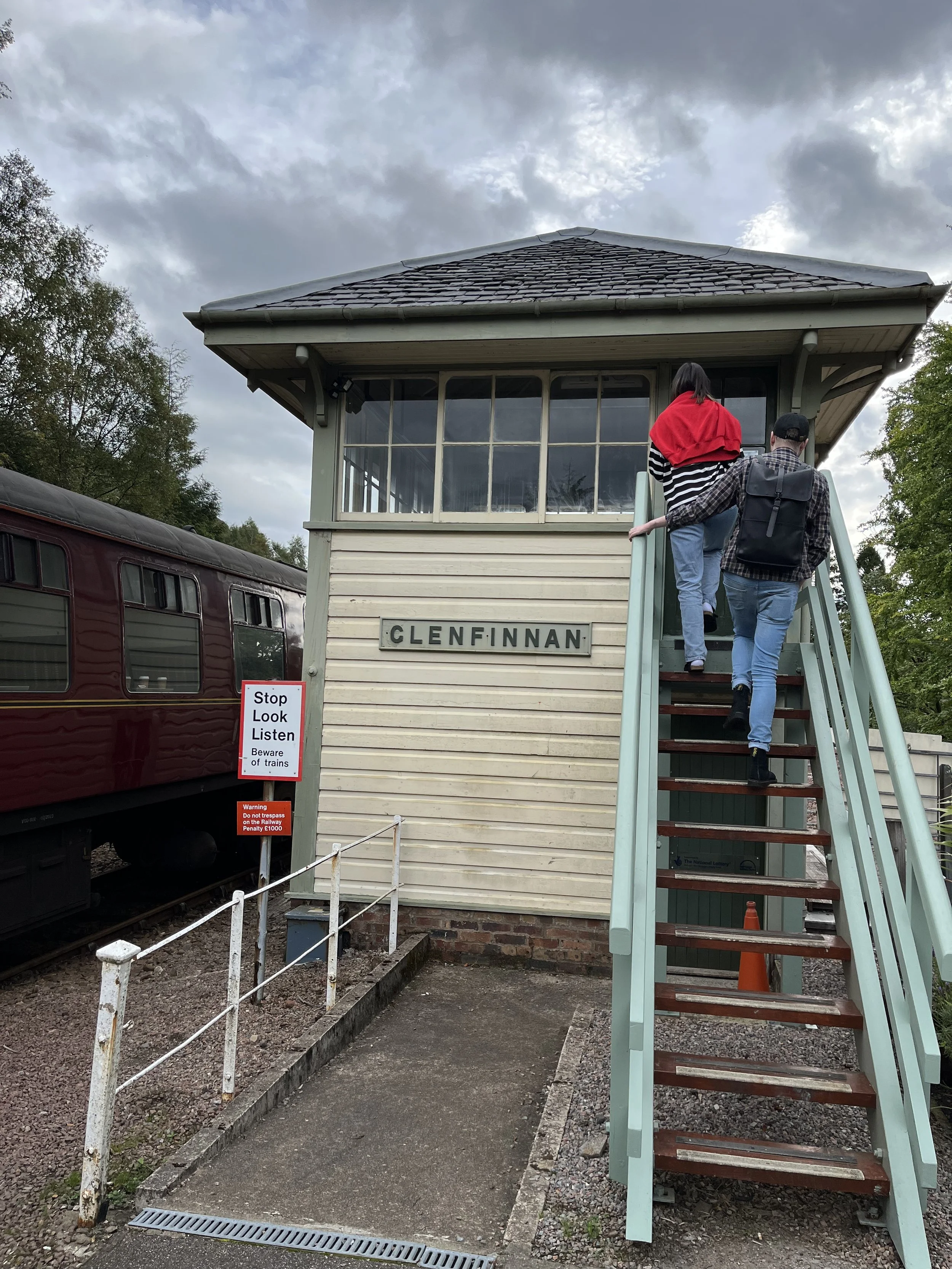 One part of a day trip we took through the Highlands near Inverness was a ride on the Jacobite Steam Train. About halfway through the trip we stopped at a station in Glenfinnan for a short break. The station had an ice cream booth where many of the other passengers partook in a sweet treat, but we were more interested in stretching our legs, so we took a short walk down the road that lead to the station.
